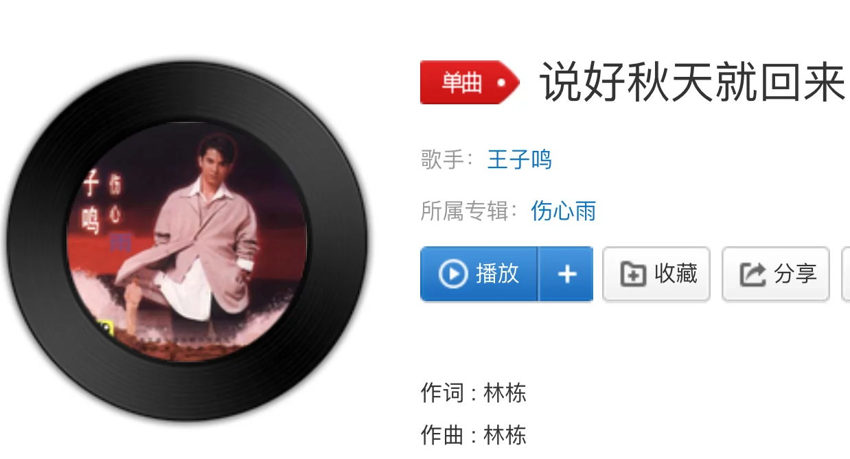 《说好秋天就回来》是一首由林栋填词、谱曲的歌曲,演唱者是王子鸣。