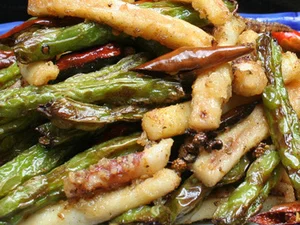 鱿鱼条烧四季豆是一道非常好吃的传统鲁菜,具有味道鲜美、口感丰富、延言子营养全面、下酒下饭的特点。