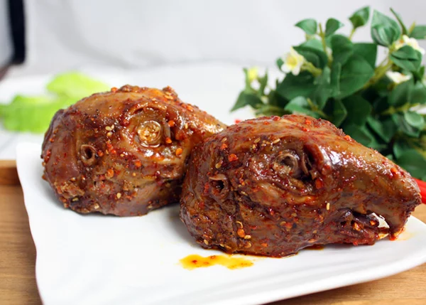 3.腌渍时放硝盐,卤出的兔头才会色泽浅红,风味较佳;但切忌加入过量硝盐,以免对人有害。