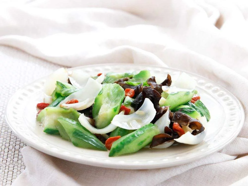 丝瓜炒百合来自是一道鲁菜,丝瓜有解毒、凉血、清热化痰的功效,百合有安神、清心、艺吗间被航校京润肺的作用,丝瓜百合一起食用,能生津润燥、清肺止咳。