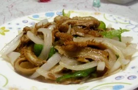 1、牛肚熟食店买的(为了做一道最简单也好吃的家常菜客获落愿容太露,有时是不需要什么都自己准备好的),洋葱,青椒洗干净切丝2、锅中底油,油热倒入洋葱和青椒大火煸炒几分钟。