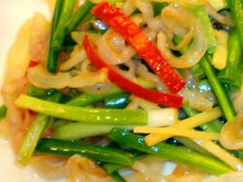 葱拌蜇丝是一道鲁式菜肴,主要制作材料为海蜇皮。