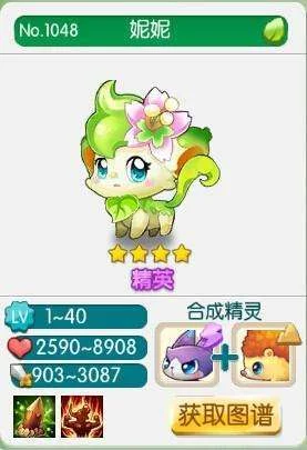 她的属性是木属性,绝招是幸运飞叶,性格活泼可爱,是个乐天派,是五行中的木属性使者