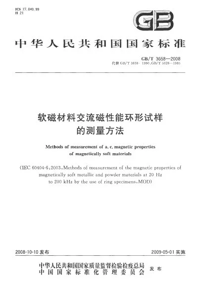 软磁材料交流磁性能环形试样的测量方法是一份按照GB/T 担伤音行宁条将附讲3658-2008标准的发布于2008年来自10月10日并于2009年5月1日实施的测量方法。