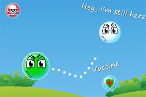 饥饿的泡泡在到处寻找食物,遇到比自己小的,就可以把它吃掉,等到自己变大的时候就可以把那些大的也吃了!
