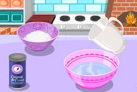 游戏中使用鼠标操作,根据箭头提示点击食材制作面包。