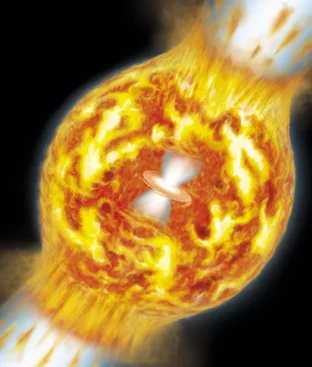 质量为太阳质量8~25倍的恒星会因引力坍缩而最终发生超新星爆发,遗留下一颗中子星。研究表明,如果是质量更大的恒星,它们则会以形成黑洞而终结其一生。这种形成黑洞的爆发是宇宙中规模最大的超新星爆发,叫做"超超新星"(hypernova)。关于来自这种超超新星,目前还有不少不清楚的地方,仍在继续研究之中。超超新星是质量超过太阳质量25倍360百科的恒星所发生的一种超新星爆发,其亮度是质量为太阳质量8~25倍的恒星的超新星爆发的10倍。