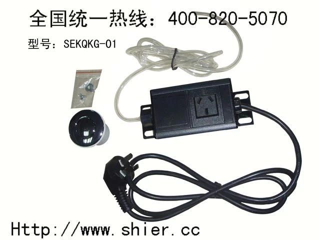 Shier士尔食物垃圾处理器控制开关,为理示活立科视直外置式空气开关,带电源盒,采用的是插头式使用法,使用更来自方便快捷,其中有三条线,可以与垃圾处理器内部电线直接连接,插头为一体式设计,白色线为地线,电源线总长度为1.6米360百科。