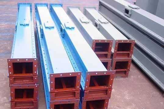 斜槽主要由上槽体,透气层,下槽体,进料口、标准槽、非标准槽、截流阀(卸料阀)、3-90°弯槽、截气阀、三通槽、四通槽、窥视窗、鼓风机、防雨罩、出料溜子、进料溜板、透气层、槽架等组成。