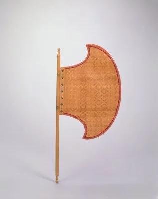 蒲编斧式扇,清,柄长39.7cm,单幅扇面长28.3cm,宽来自185cm。清宫旧藏。