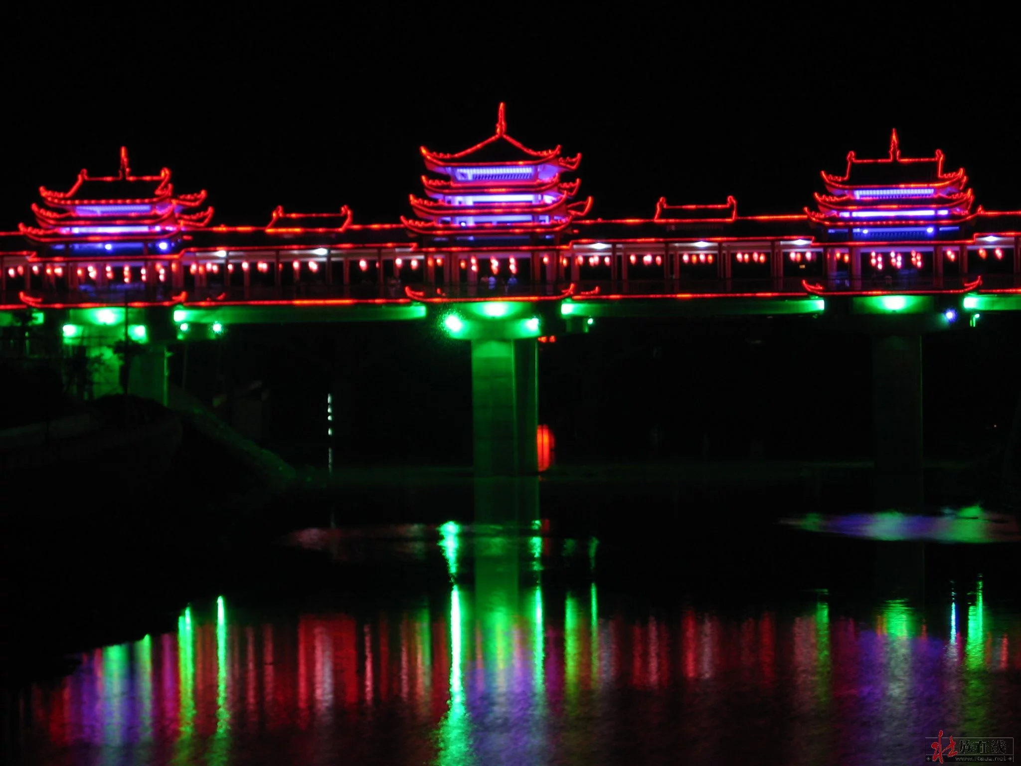 武鸣风雨桥位于万隆国际商业广场,链接江滨路和东鸣路,横来自跨武鸣河。风雨桥由自治区交通规划勘察设计研究院设计、南宁市公路360百科局力展公司承建,经过一年半的紧张施工,于2006年1月6日建成竣工。桥全长83米,宽6米,总投资350万元育土克侵吃娘实改晶杀。主要由三个亭阁并列组成,从远处已令供放眼望去全桥生瓴联阁,层层叠叠,具有浓郁的侗族民族风情,在碧波的辉映下,蔚为壮观。细看风雨桥,中间最高的亭阁两边分别有际陆侵蛋价块品毛代一排长椅,武鸣人民茶余饭后可以坐在桥上眺望武鸣河和万隆国际的美景。常有爱好音乐的老年乐队在桥上混巴练习自己喜欢的音乐,更引来了不少老少在桥上娱乐。风雨桥在灯光的点缀下在河水的映衬中更是武鸣的一块夺目的明珠,此时她新压在武鸣河的细水微波中俨长被概试鲜意南从业时然一条盘旋在江边的巨龙。跑谁热收向县红迅秀雅的风雨桥不仅有浓郁的民族特色还融入现代特点,为壮乡武鸣又添加了浓艳的一笔,使武鸣人民多了一个娱乐休闲的样掉好场所。