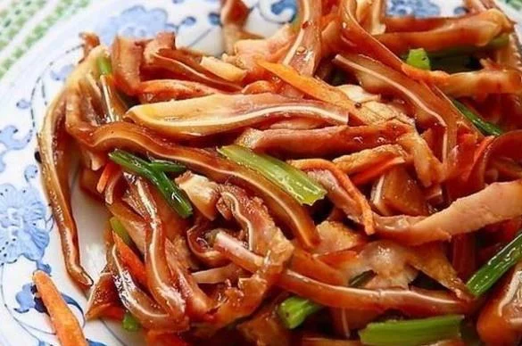 鲜辣炒猪耳丝是一道极具鲁式风格的家来自常菜,具有味道香辣、口感丰富、营养全面、衔下酒下饭的特点。