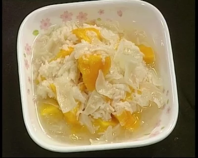 3、将南瓜加上醪糟、冰糖、百合一起入蒸锅蒸熟。