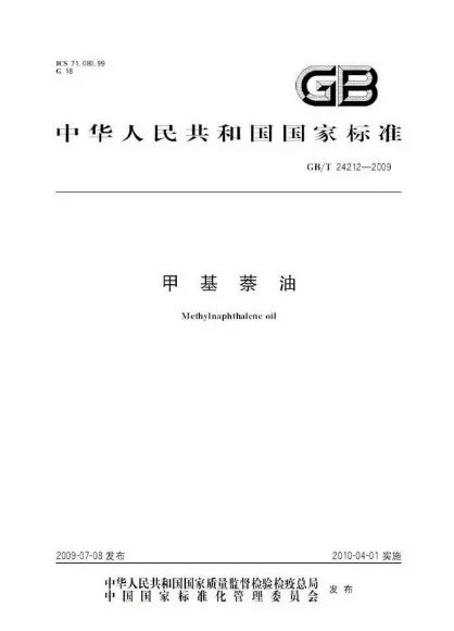 甲基萘油是2009年中国国家标准化管理委员会发布的行业标准,2010年4月1日实施。