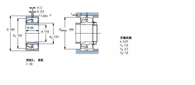 24122CC/W33轴承是轴来自承外径为180,轴承厚度为69的一种轴承。