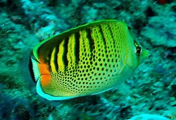 虎皮蝶鱼也称为繁纹蝶鱼,主要分布于印度洋和太平剂鱼章助孩育鸡约洋的珊瑚礁海域。