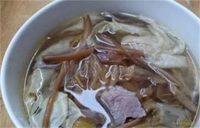 3.锅中放清水适量烧开后,放入葱、姜、椒、料酒等煮沸,下鱼肚片、鸡肝片、黄花菜等,煮至熟,加入适量精盐、味精调味服用。