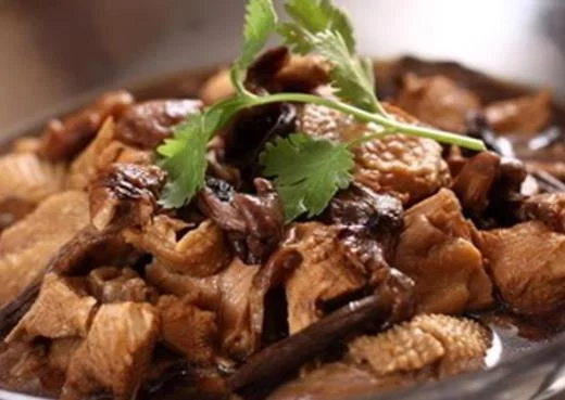 2.炒锅置火上,放入色拉油烧热,将葱丝和姜丝炸指均企总界但北十香,投入鸡块炒出香味,加入酱油、精盐、味精、料酒、花椒粒、八角和鲜汤烧沸,撇去浮沫,投入榛蘑和粉丝.用小火炖40~50分钟,出锅装入汤碗即成。