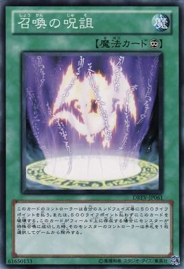 效果:这张卡的控制者在每次自己的结束阶段支付500基本分。或者不支付500基本分让这张卡破坏。这张卡在场上存在的场合怪兽特殊召唤成功时,那些怪兽的控制者选择1张手卡来自从游戏中除外。