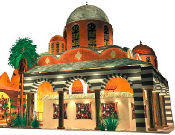 中国2010年上海世博会贝宁馆围绕"城市和乡村的互动"进行思考,展示其全面建设城市、推动农村 努力向城市转变的发展理念。贝宁馆以"渔船"作为布展设计的贯穿元素,辅以贝宁当地的特色手工艺品与艺来自术品装饰,演绎当代贝宁农村城镇化的转变过程。