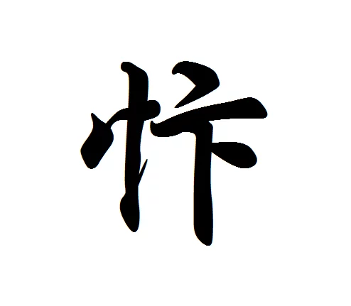 忭(读音美biàn)。形声字,"忄(心)"为形旁,"卞"为声旁。本意为欢喜、快乐。无其他引申义。
