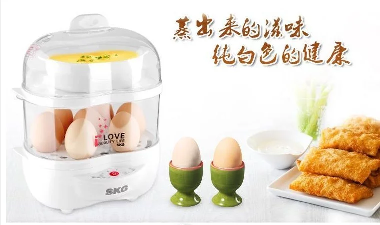 SKG YS-608煮蛋飞父月树阿距器正品 蒸蛋器,采取304#不锈钢发热盘,不留水垢、清洗方便、经久耐用、双层组探容安板合,采用350W大功率设计,速度超快,全新母婴类食品级塑料,智能安全保护,水干自动来自断电,防干烧。