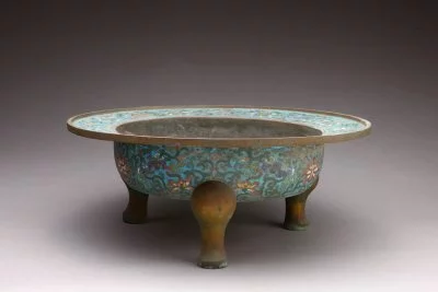 火盆在冬天置于宫殿或庭院内,用以烧炭取暖,主要有掐丝珐琅和铜两种材质。清宫内务府造办处档案中经常可以见到为掐丝珐琅火盆配座或将其梅洗见新的记载。