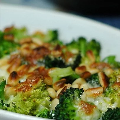 中文名称 芝士松仁西兰花 主要食材 西兰花,松仁 配料 蒜末 调料 盐,橄榄油,黑胡椒粉 工艺 烤 做法 1、洗干净西兰花切小朵,用水焯好,然后沥干水分 2、吧芝士铁粒切碎,松仁清理干净 3、用蒜末,盐,橄榄油,黑胡椒粉把熟西兰花拌匀,放到烤盘里剧。 4、撒点儿切碎的芝士粒,撒点儿松仁,火力稍微大点 5、烤至芝士和松仁变金黄即可 点击展开全文 转载请注明出处安可林文章网 » 芝士松仁西兰花