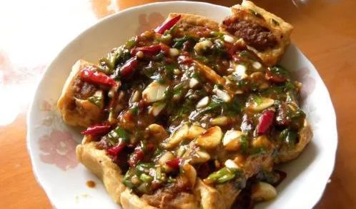 《蒜香肉末煎酿豆腐》是一道中国民间传统家庭美食,由豆腐烹饪而成。