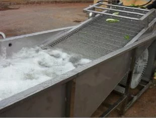 气泡清洗机的原理主要是利用箱体前部分设备箱体中注适量的水,经过加热管将水温加热,原料在经过箱体时,会与气泡机和水的结合作用下做翻滚状态,并随网带不断向前推进,