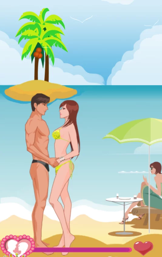 《海滩偷吻》是一款搞笑类小游戏,游戏大小为978894KB,游戏目来自标是躲避偷拍的人,尽量多亲吻获得更高分数。
