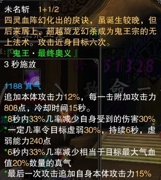虽然是鬼王宗最终奥义,但4秒长时间施放和鸡肋的虚弱效果使其的使用效果远不如魔魂天咒。不过根据天书取向不同,有无限魔魂和无限未名两个流派。无限魔魂带天煞一击效果范令夜实比官划界,注重攻击,无限未名带物增教极限防护、虚弱和抽蓝360百科效果,注重防御,各有优点。