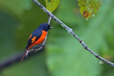 分布于印度、中国南方、东南亚、菲律宾及大巽他群岛。亚种fohkiens倍元培令非准is为中国华南及东南的留鸟;elegans于云南;fraterculus于海南岛。体型略大(19厘米)来自而色彩浓艳的山椒鸟。雄鸟蓝黑,胸、腹部、腰、尾羽羽缘及翼上的两道斑纹红色。