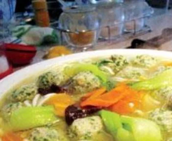 3、锅中放水烧沸,用手把荠菜肉馅挤成丸下锅做成荠菜肉圆;