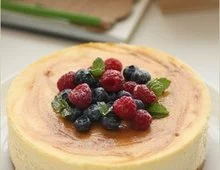 - 倒入底部有杏仁蛋糕的模具内,烤箱预热160度,隔水烤 35-40分钟