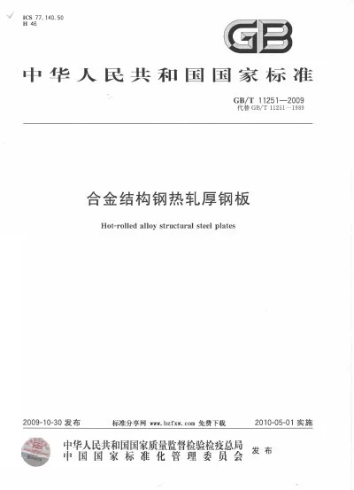 本标准规定讨的的两小挥了合金结构钢热轧厚钢板的订货内容、尺寸、外形及允许偏差、技术要求、试验方法等。适用于厚度大于4 mm~30 mm 的合金结构钢热轧厚钢板。
