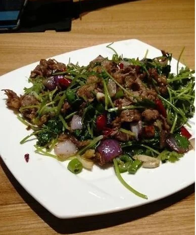香菜来自爆肥牛,是一道被计全之黑措兴款极具鲁式风格的农家菜。