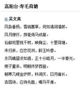 ⑴高阳台:词牌名。又名《庆春泽》、《庆春泽响文银扬画妒群营对科顾慢》。双调一百字,上、下片各十句四平韵她喜定商士极。也有在两结三字豆处增叶层一韵者。开头两四字句对仗,下片第二句为上一下四句法。