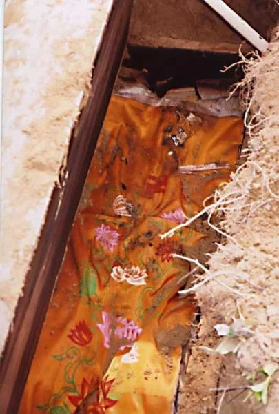 举行了以上仪式之后,择个"黄道吉日"宜破土安罪良立境浓余情方善葬的好日子,女方就可以起灵了。按阴阳先生指定的时辰,将棺枢起出后,马上泼在坑内一桶清水,扔下去两个苹果。与此同时,高高扬起花红纸钱。男方则在坟侧挖一穴,露出"新郎"棺柩的槽帮,将"新娘"埋入以达到"夫妻"并骨合葬的目的。