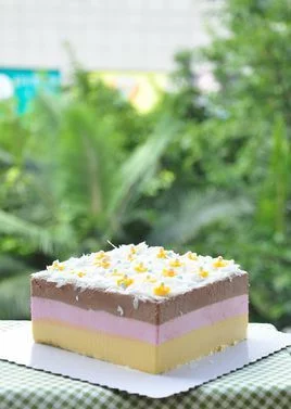 4、做三种颜色的慕斯稍微麻烦一点,如果你想方便,只做一样时间就短多啦。但是也没这么好看哦。