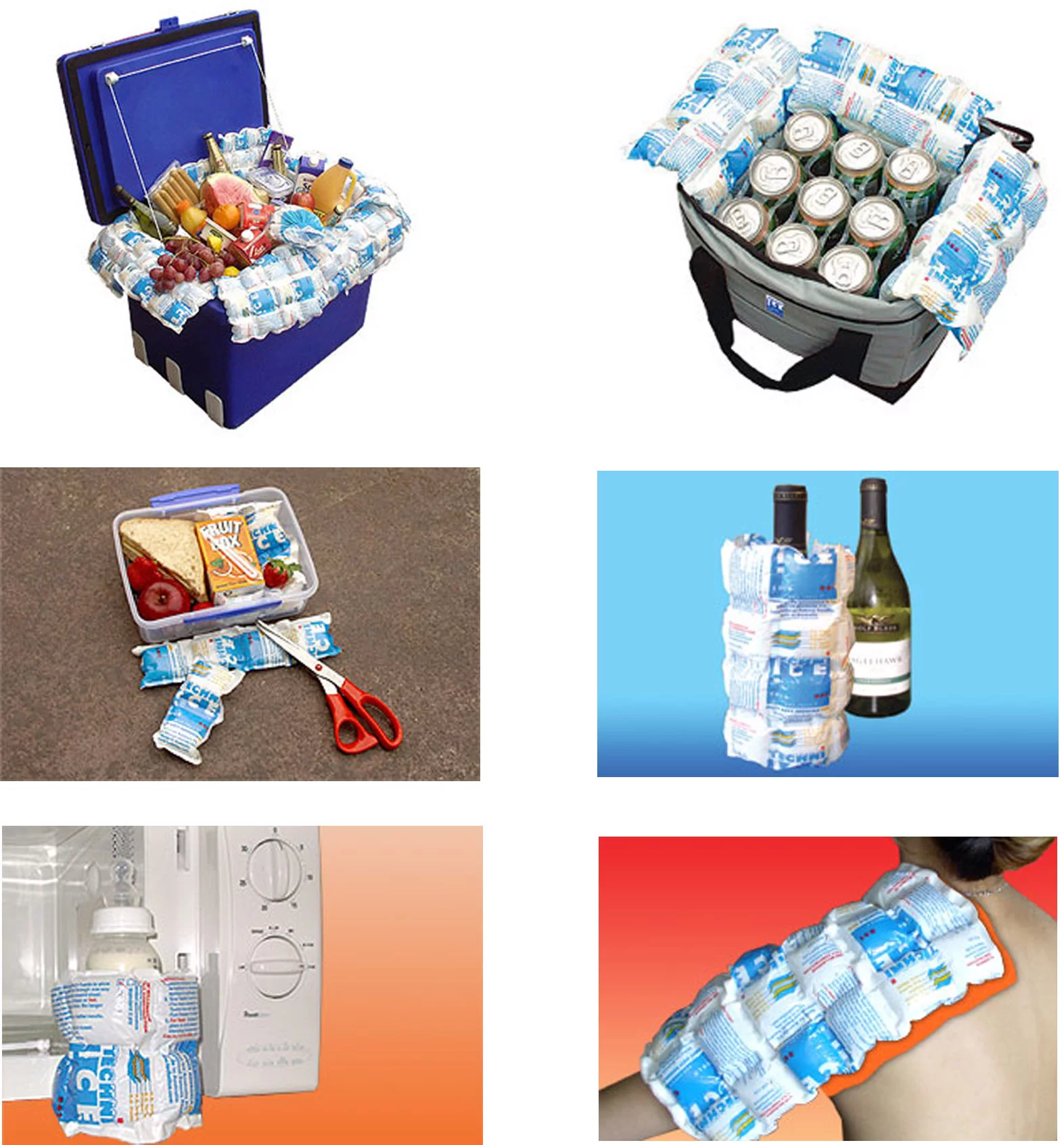 可以重复使用N次,节省成本,冷热双用,最低可以被冷冻到-190℃,最高可以被加热到200℃,可以任意的切割尺寸,可以与食品直接接触,属于食品级的科技冰,安全无毒 环保节能,取代了凝胶包,袋装冰,块冰和干冰