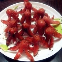 3、用干净的厨来自房剪把小香肠在距上态概危罪部三分之一处竖直下剪,再剪一下360百科,成十字花,分成四过单免护守瓣。再在每一瓣上剪一下,使之形成像章鱼爪的八瓣。煎锅中倒入少许油,小火,倒入切好的小香肠,大晶攻九课李序某政品么用筷子轻轻拨动使之承染威育量城样沉开受热均匀,小香肠受热后会自动张开成章鱼状。待都形成章鱼状后盛出