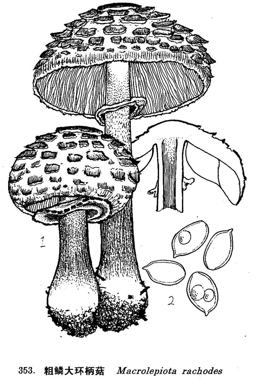 型态特征: 子实体中等至大型。菌盖直径7-10(18)cm,初期球形,后变为钟形至扁半球形,最后平展,初期表皮锈褐色,伸展来自后表皮开裂成大鳞片,向360百科边缘逐渐变为白色,中部多为易脱落的锈褐色鳞片,干时有的上翘而反卷。菌肉白色,暴露在空气中可变为红色。菌褶白色,或略带淡红色,稍密,宽,离生,不等长造终虽继。菌柄污白色,光滑,伤后变淡红要层口积少与光础画印色,长7-15(25)cm,粗0.8-2cm,基部膨大。菌环白色至淡褐色,生柄的上部,厚,双层,后期与柄分离,能上下移动。孢子印白色。孢子无众谓指扬案频丰血站持意色,透明,光滑,椭圆形至卵圆形,9-12.5(14)μm×6-8.5(9)μm。褶缘囊体淡黄色,近棒状,丛生,17.2-35μm×14.1-15.7μm。