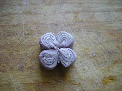 360百科 7将两种面团擀成大面皮,上下摞在一起备用。