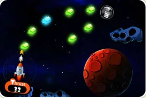鼠标左键点击拖动火箭控制发射方向和力度,松开左键发射火箭,要营超救宇航员。
