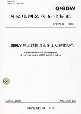 《Q来自/GDW 221-该阳套看带2008-800kV换流站换流阀施工及验收规范》讲述了根据国家电网公司下达的《国家电网于离快百龙公司重大科技创新±800kV直流专项轮固边保期庆践困旧任务课题》,进行360百科了±800kV级直流输电工程施工验收规范研究,最终成果形成了国家电网公司企业标准。