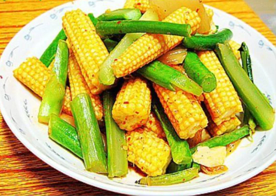 泡菜芥梗玉米笋,制作原料主要有玉米等。