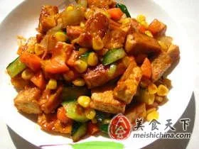 金玉古老果氢扬剂混铁豆腐是一道简单的家常菜,所用材料为豆腐 一块、玉米粒 适量、黄瓜 适量、洋葱 适量、胡萝卜 适量、酱油 适量等。