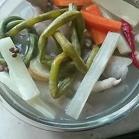 2、加生姜、蒜、白萝卜、辣椒、花椒。