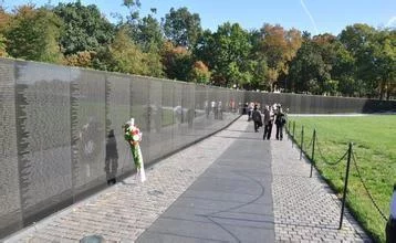 这个由黑花岗石建成的纪念墙是为了纪念在1959年到优众宜述1975年在印度支那牺牲的美国军人而建立的。由耶鲁大学学生林樱设计,于1982年竣工的纪念墙雕刻着58132名在战争中牺牲或失踪的美国士兵,每年大约有250万人来此参观。